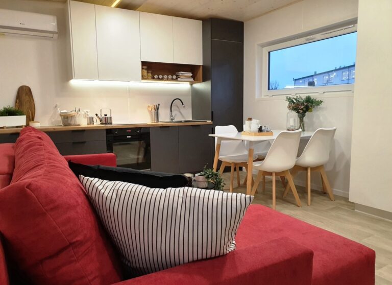 Ready-made, small houses with a built-up area of up to 35 m2 are becoming more and more popular. They are a great alternative to apartments in a block of flats, providing a sense of freedom and a unique atmosphere that cannot be found in blocks of flats. The year-round VIDA model has one bedroom, a living room with a kitchenette and a bathroom.